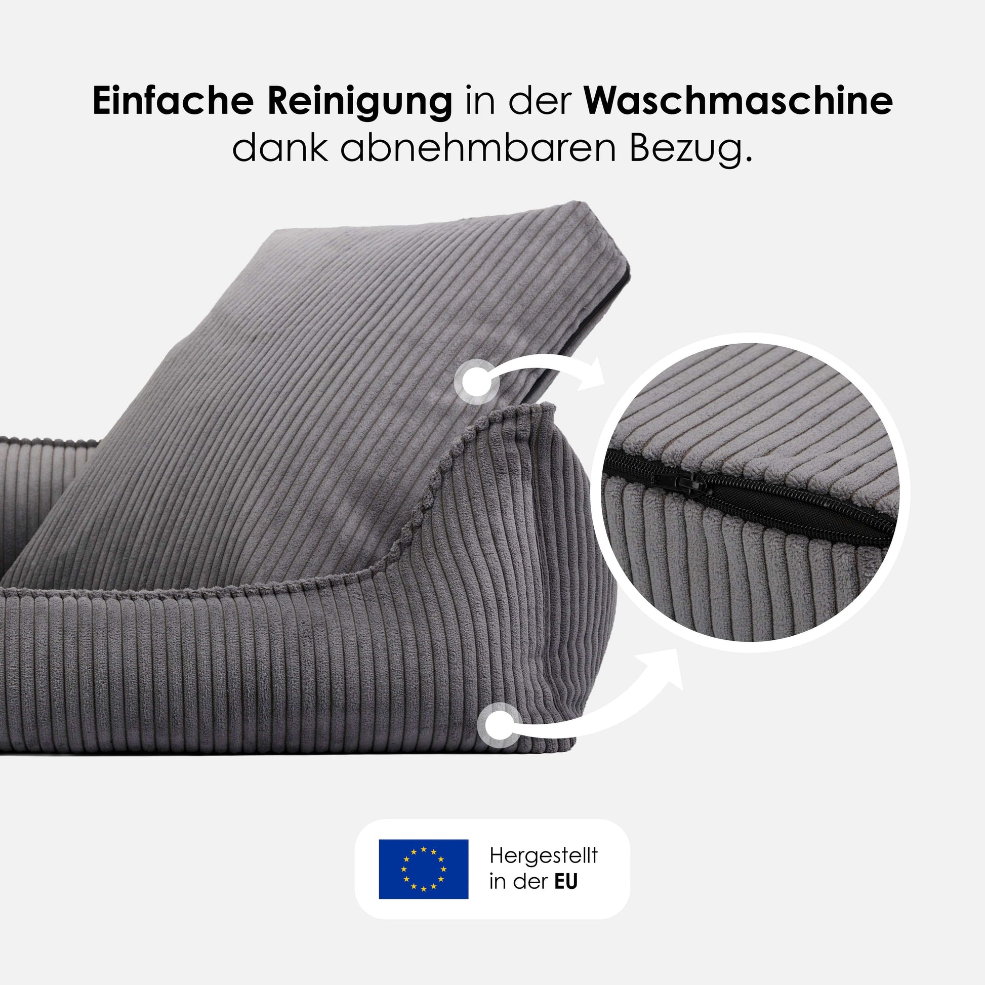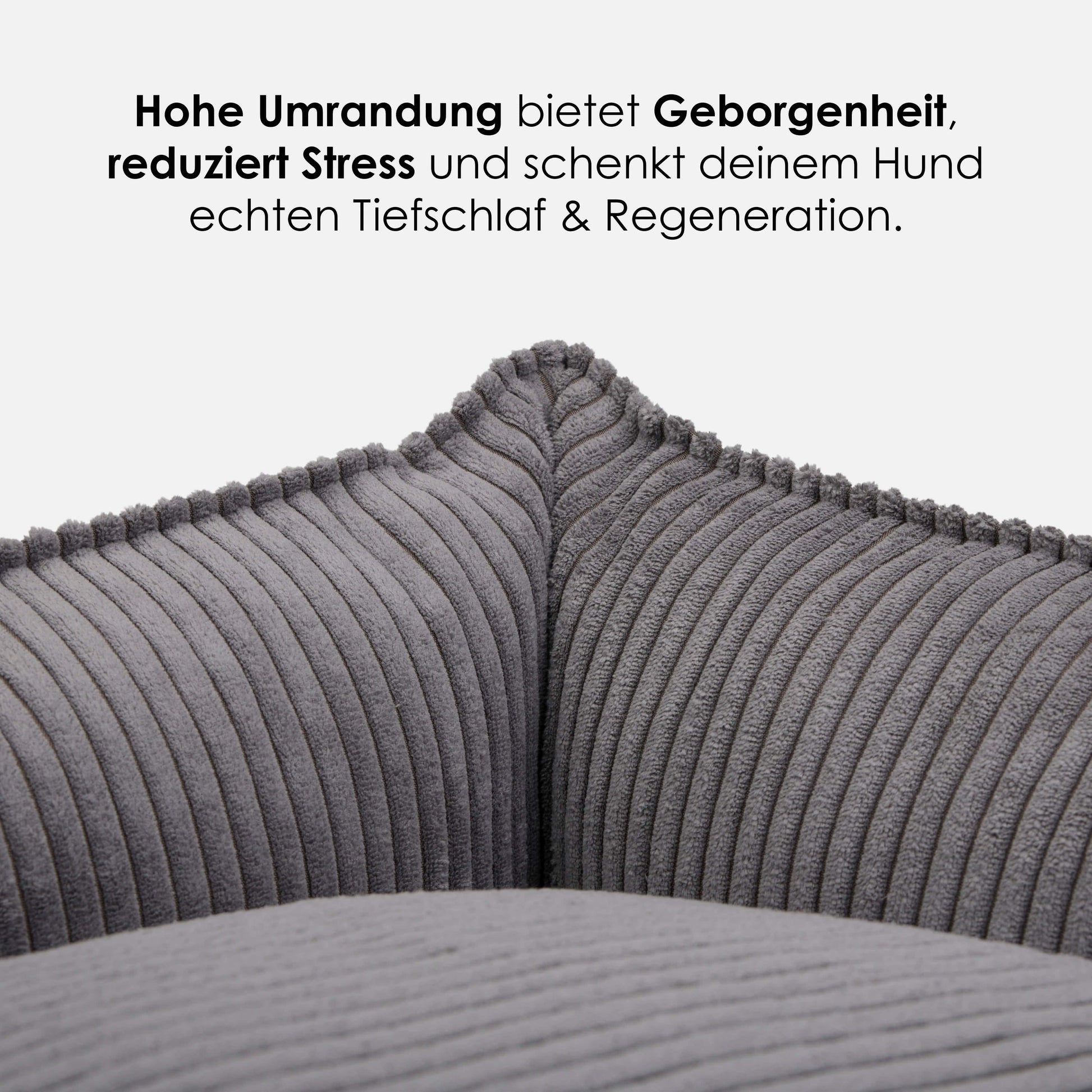 Orthopedisch, rechthoekig Cord hondenbed. Combineert stijlvol design met maximaal comfort. Ideaal voor de gezondheid en rust van uw hond.